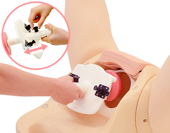 - эластичные наружные половые органы, реалистичная форма родового канала и удерживающая рукоятка для манекена тела матери позволяют моделировать роды