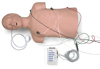 Для демонстрации и отработки навыков проведения дефибрилляции и СЛР. Поддерживает работу с ручным, полуавтоматическим и автоматическим дефибрилляторами. Обеспечивает полноценное проведение СЛР. Симулятор аритмии/ритма воспроизводит 17 вариантов сердечного ритма взрослых и 17 вариантов сердечного ритма детей. С помощью наружного стимулятора можно симулировать электрический захват. Можно также симулировать кардиоверсию с помощью ручной, полуавтоматической или автоматической дефибрилляции. См. (12324) для получения полной информации о симуляторе аритмии/ритма, подключенном к данному манекену. Поставляется в комплекте с блоком нагрузочного сопротивления, блоком для симуляции аритмии, манекеном для СЛР Adam с кожей для проведения дефибрилляции, 10 одноразовыми системами «легкие/дыхательные пути», 10 комплектами «рот/нос» и мягкой сумкой для переноски. Манекен имеет адаптеры для участков проведения ручной дефибрилляции, адаптеры Physio, Laerdal и Marquette.