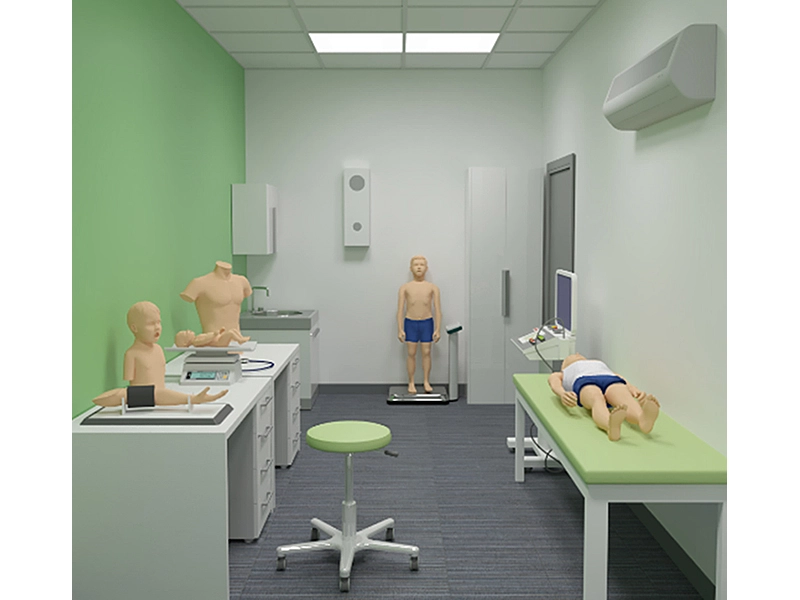 Тренажер предназначен для отработки практических навыков (в рамках программы первичной аккредитации по специальности "Педиатрия" для станции "Физикальное обследование ребёнка") и представляет собой модель торса ребёнка 3-летнего возраста, установленную на специальную платформу, с возможностью проведения осмотра как с вентральной, так и с дорзальной поверхности.