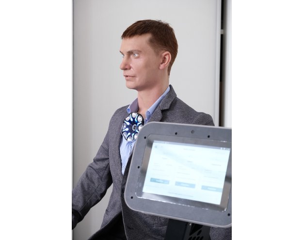 ВиртуБОТ - потрясающе реалистичный, с внешностью практически идентичной человеку. Он улыбается и грустит, удивляется и злится, моргает и поддерживает зрительный контакт. Робот распознает речь и даже шутит в ответ на реплики врача!