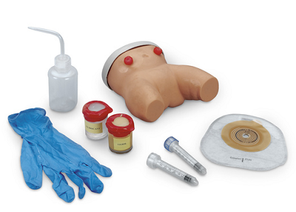 Фантом предназначен для обучения уходу за стомами у маленьких пациентов. Анатомия колостом, внешний вид и функциональные возможности полностью соответствуют реальным. В колостомы возможно вводить имитатор стула, консистенцию стула можно регулировать за счет добавления воды. Также возможно выполнять ирригацию колостом.