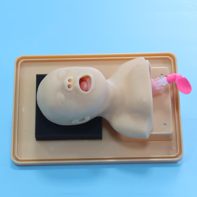 - Тренажер представляет собой модель головы новорожденного с дыхательными путями на подставке