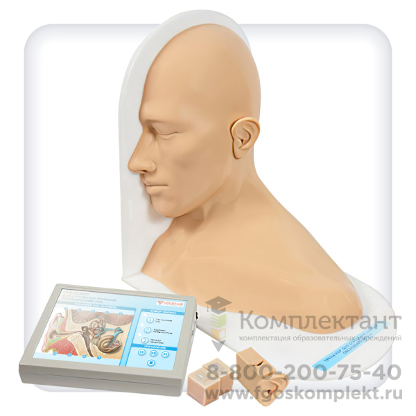 В комплектацию тренажера входит электронный контроллер, позволяющий изучать анатомию наружного, среднего и внутреннего уха. Данное оборудование работает в двух режимах: ”обучение” и ”контроль”.