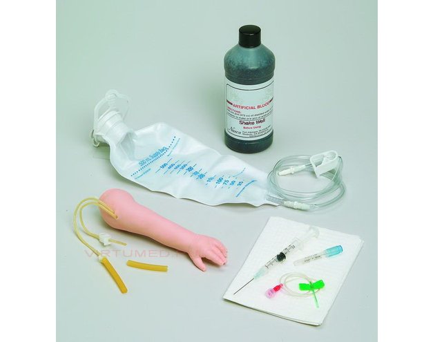 Педиатрический фантом руки младенца АйВиАрм сконструирован для отработки внутривенных инъекций у детей младшего возраста. Модель имеет специальную, особо тонкую кожу и трубки, имитирующие вены, с достоверным небольшим просветом и тонкими стенками. На модели руки доступны подкожная латеральная (головная) и подкожная медиальная вены, а также венозная дуга на тыльной стороне кисти.