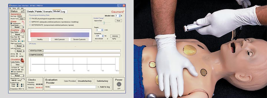 • Управляя манекеном с помощью беспроводного компьютера, можно создавать различные угрожающие жизни пациента ситуации и отслеживать действия работающей с манекеном команды