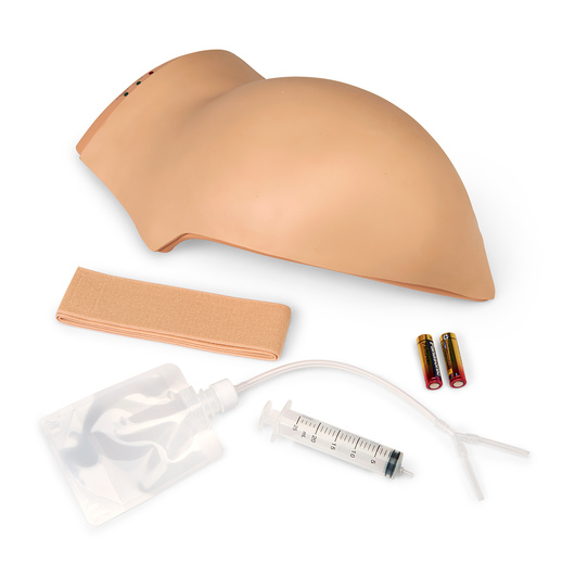 - легкая и компактная модель левой ягодичной области укомплектована ремнем для крепления на теле симулированного пациента