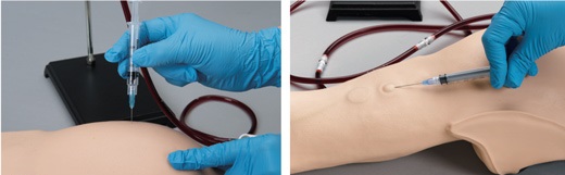 - эластичные венозные трубки создают реалистичные ощущения прокола стенки под иглой и попадания в просвет