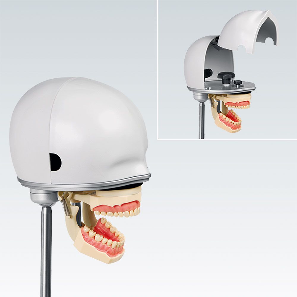 - Фантомная голова с имитацией челюстно-лицевого аппарата, полным функционалом и анатомически правильными измерениями