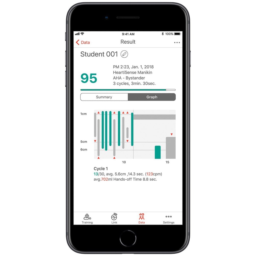 • благодаря технологии Heartisense тренажер позволяет обучающемуся выполнять сердечно-легочную реанимацию и получать обратную связь на свой телефон или планшет